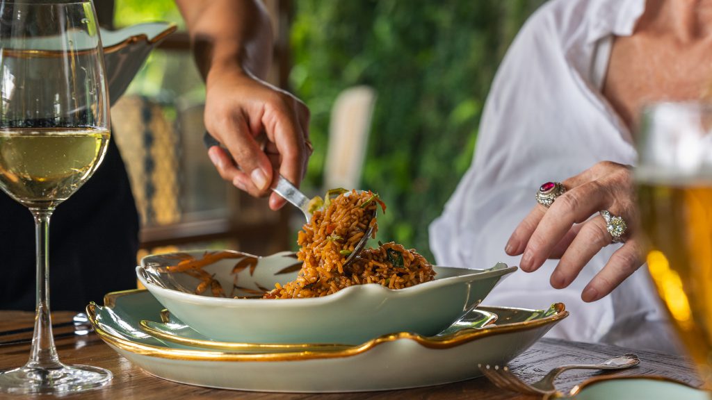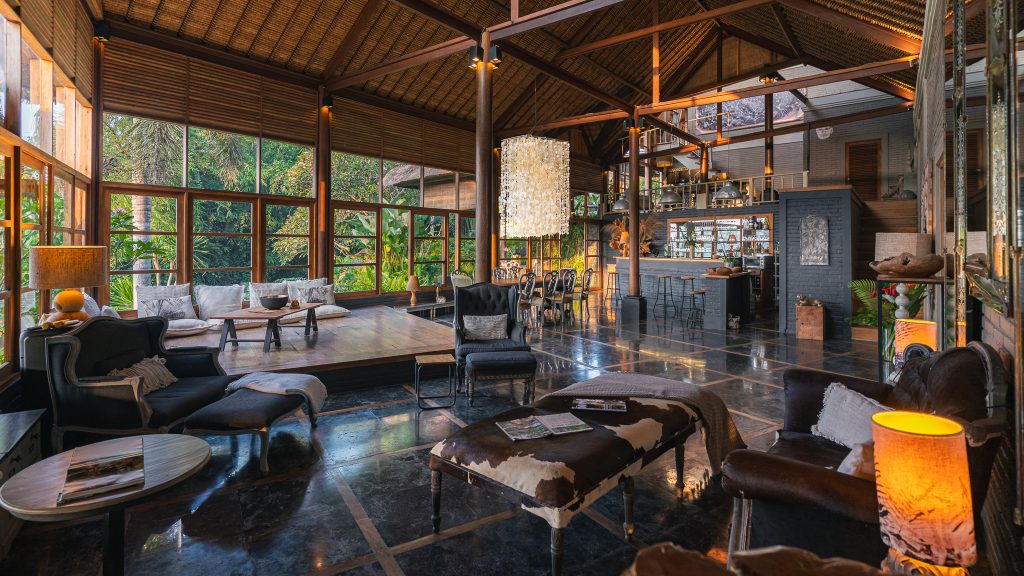 VILLA PARADISE spans multiple levels within a stunning botanical garden. It provides a grand entrance, a pool with a pool house, and a spacious living room with an open kitchen and bar. An outdoor dining area, surrounded by koi-filled ponds, creates a serene atmosphere. Additionally, a balcony with a daybed, comfortable seating, and a dining space offers breathtaking views of lush rice fields, perfect for enjoying breakfast. Villa Paradise features four beautifully designed bedrooms, blending luxury with nature’s tranquility.